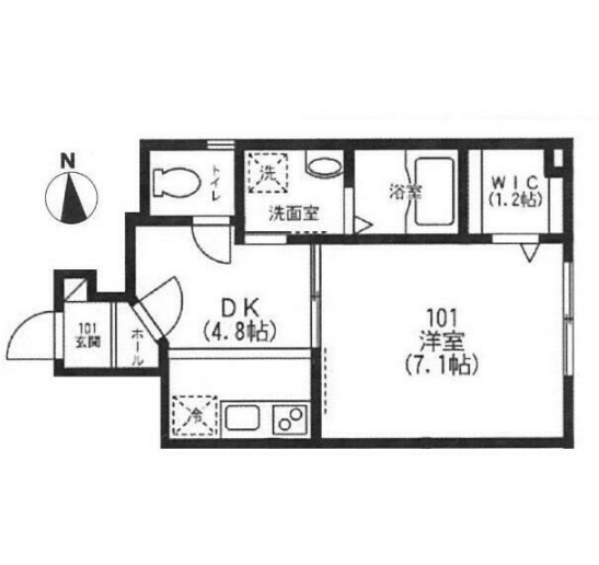 間取内容 洋室 7.1畳 1階 1室 DK 4.8畳 1階 1室